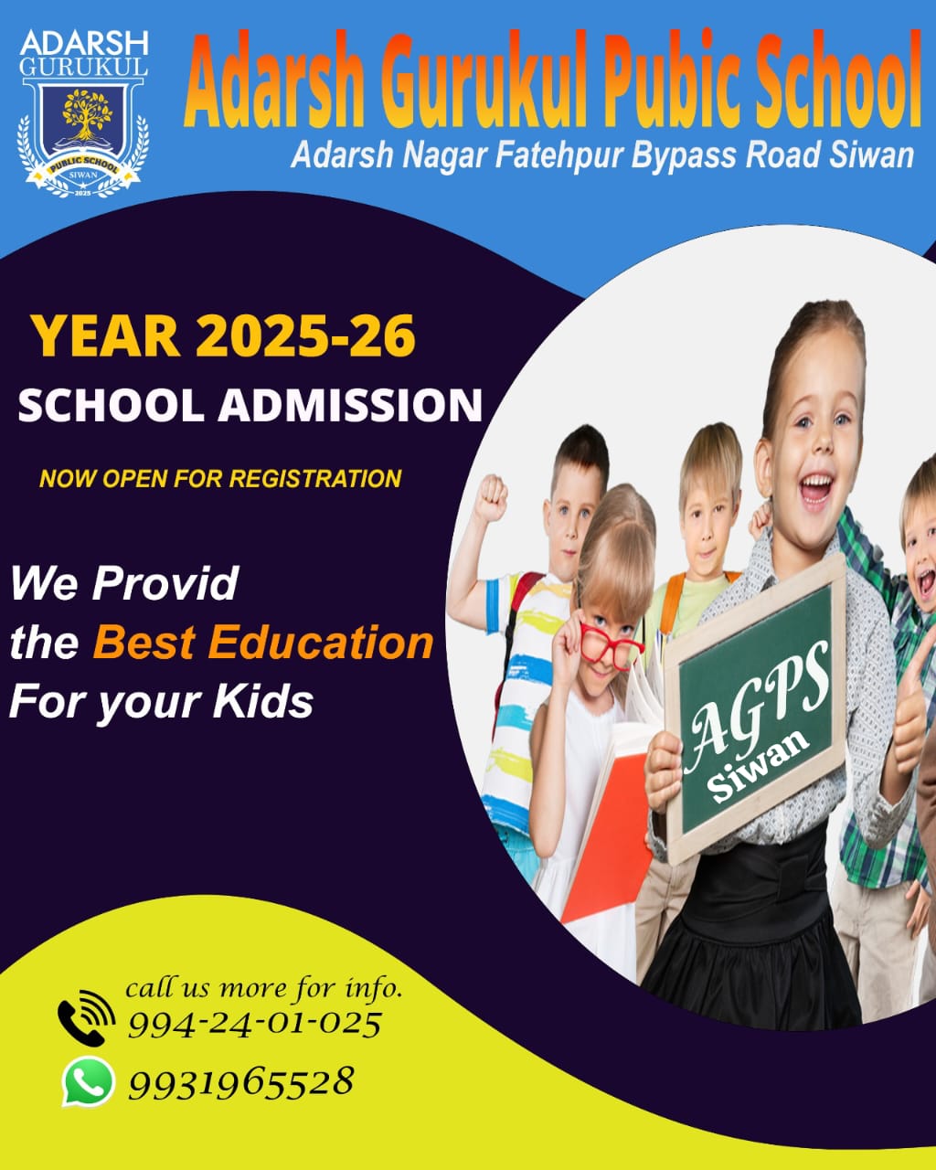 Trust registration Number: 4/22 of 2017 | Regd. No. : 21912482023123114308 | Address: Adarsh Nagar Fatehpur Bypass Road Siwan 841226| Mob. No.- 91 9942401025 | Email: agps4siwan025@gmail.com
